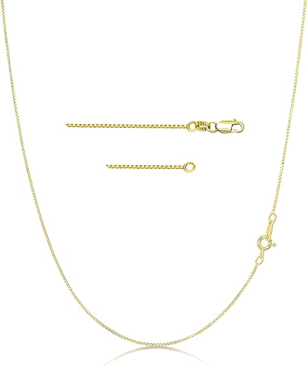 Italian 14k Real 100% Solid Yellow Gold 0.6mm Box Chain Necklace 20 Inches
