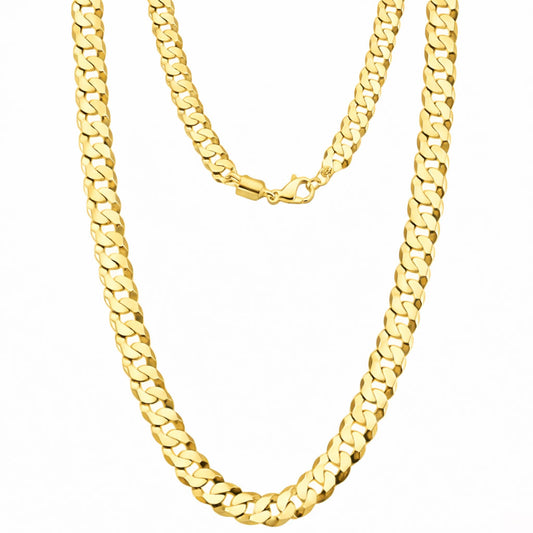 Italian 14K Yellow Gold Plated Solid Miami Cuban Chain Necklace in Sterling Silver (16.6gm-21gm)