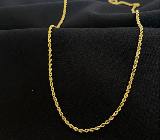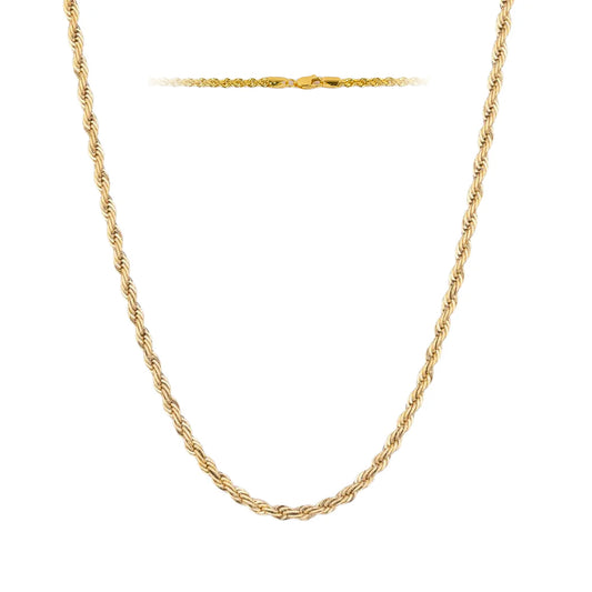 Italian 10K Real Solid Gold 2mm Rope Chain Necklace (16"-26")