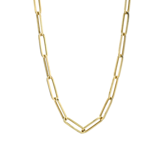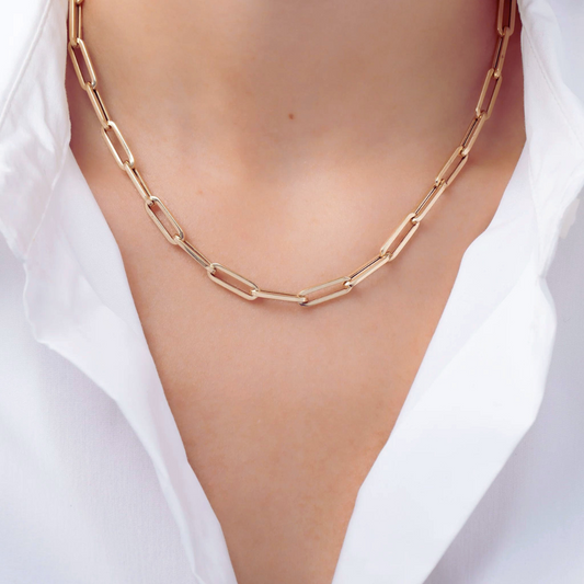 Italian 10K Real Solid Gold 3mm Paperclip Chain Necklace (16"-24")
