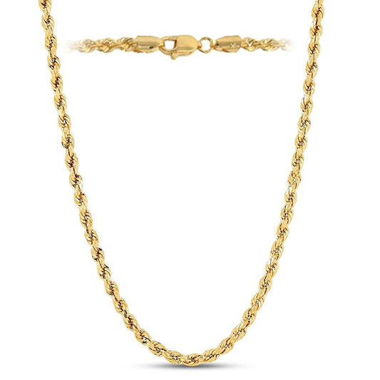 Italian 14k REAL Solid Yellow Gold 3mm Diamond Cut Rope Chain Necklace (18"-24")