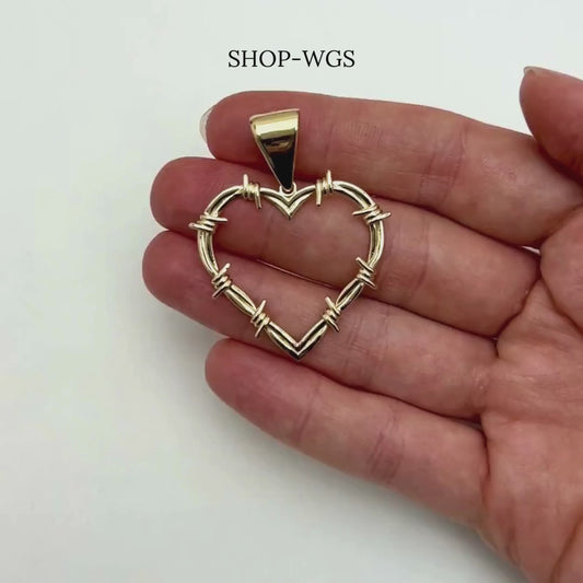 Italian 14k Real Yellow Gold Barbed Wire Heart Pendant