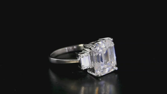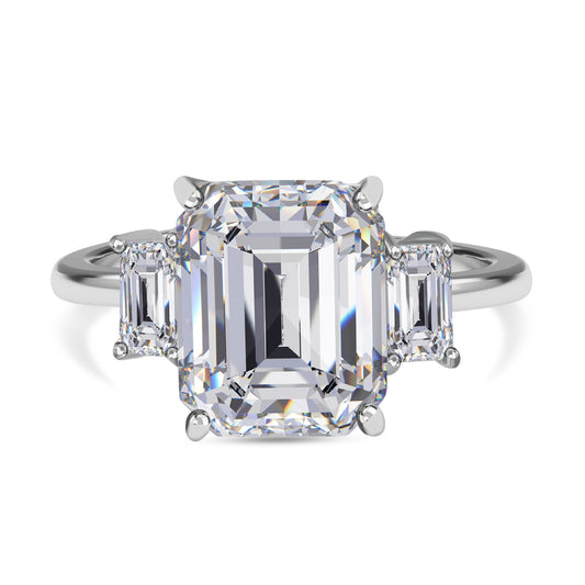 Nova Brilliance : D VVS1 Lab Created Moissanite Emerald Cut Three Ring 5.5 Ct. In 925 Sterling Silver