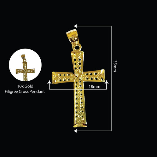 New ArrivalSAVE 49%Italian 10K Yellow Gold Diamond Cut Filigree Cross Pendant – 35x18mm
