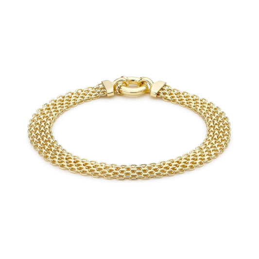Elegante pulsera Bismark italiana de plata esterlina bañada en oro de 14 k (7,5 pulgadas, 10,5-11 g)