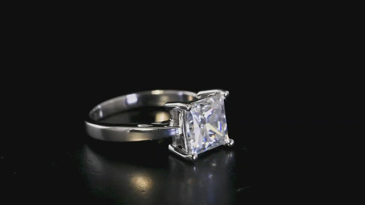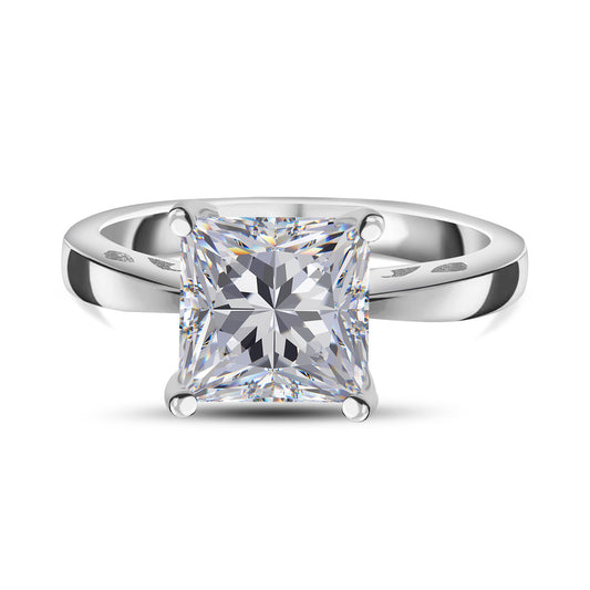 Nova Brilliance: Anillo solitario de moissanita talla princesa D VVS1, creado en laboratorio, de 2,75 ct. en plata de ley 925.