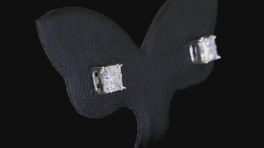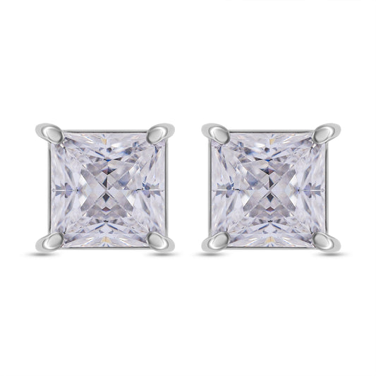 Nova Brilliance: D VVS1 - Pendiente de botón de moissanita de talla princesa, creado en laboratorio, 1,75 ct. en plata de ley 925