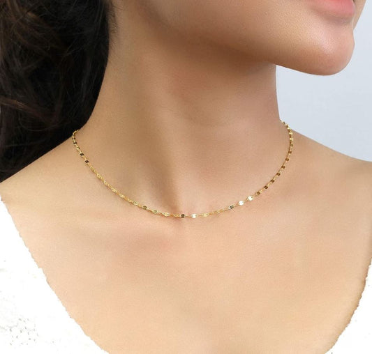 Reflejos Radiantes: Cadena de Espejo Italiana de Oro Amarillo Auténtico de 10k - 1,25 g, 18 pulgadas