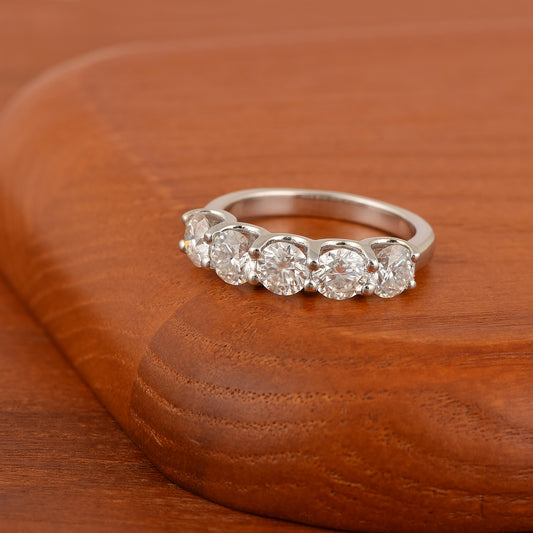 Anillo Nova Brilliance - D VVS1 de moissanita creada en laboratorio con 5 piedras de 2,50 ct en plata 925