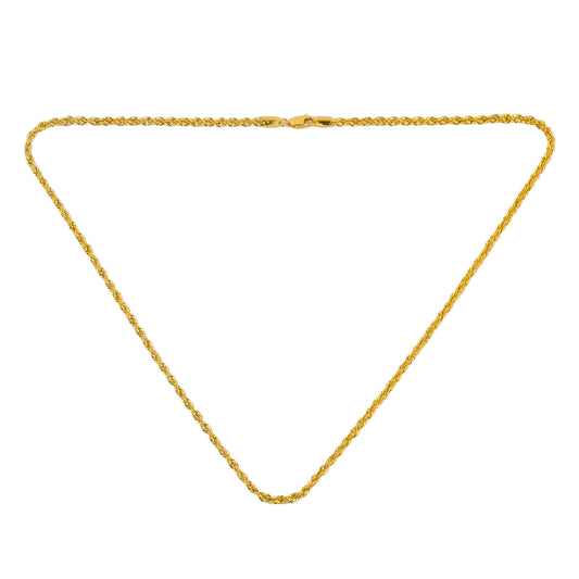 Collar de cadena de cuerda italiana de oro macizo auténtico de 14 quilates de 2,3 mm (45,7 a 61 cm)