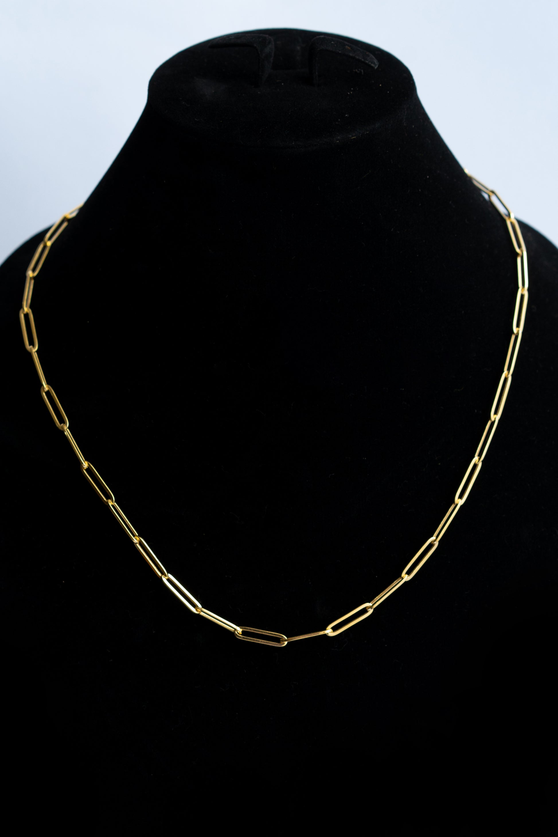 Descubra el equilibrio perfecto entre elegancia moderna y sofisticación atemporal con nuestro collar de cadena de clip de oro macizo italiano de 10 quilates. Diseñado con un elegante patrón de eslabones de clip de 4 mm, este collar es una adición versátil a cualquier colección de joyas. Ya sea para lucirlo solo con un look minimalista o combinado con otras piezas, es el accesorio ideal para cualquier ocasión.