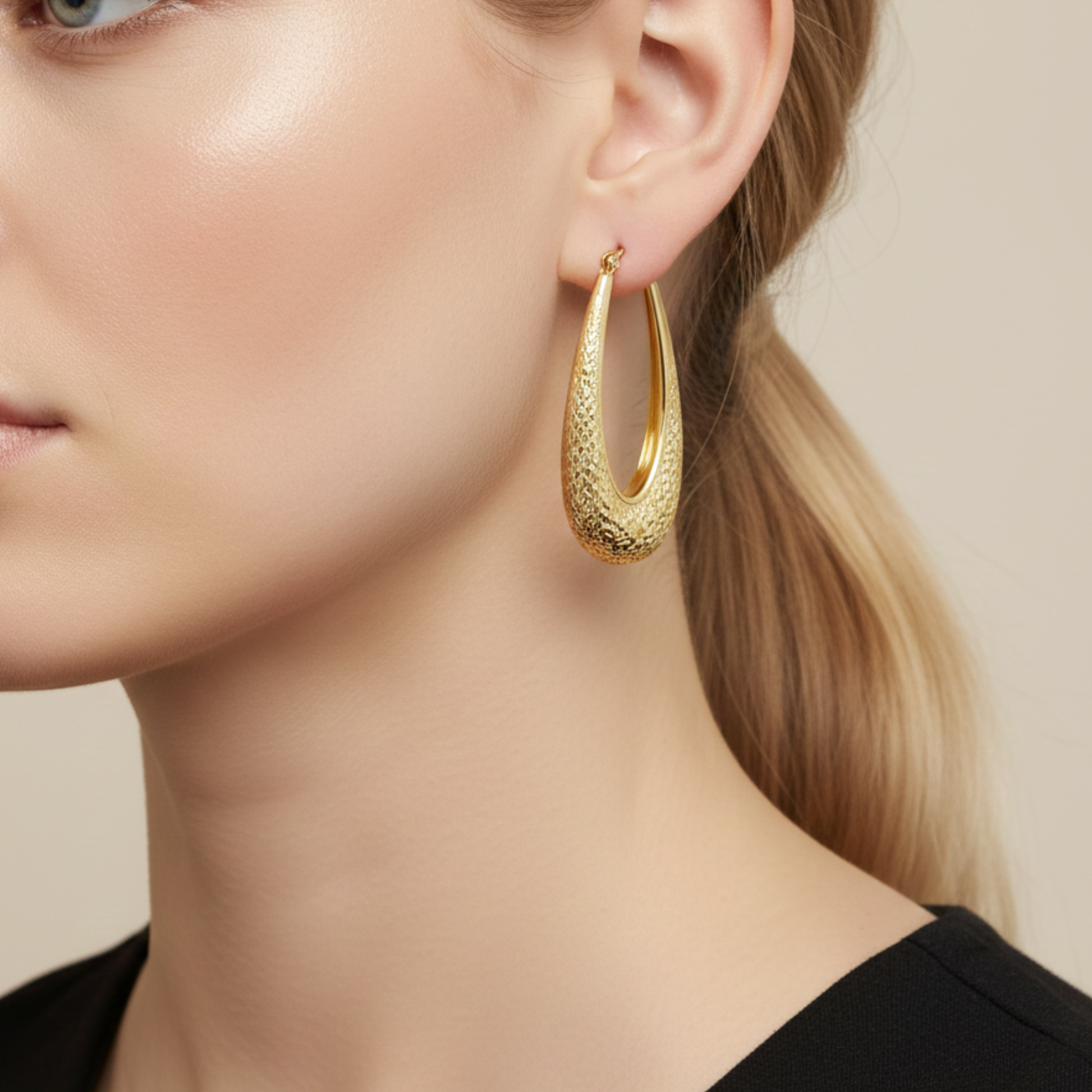 • Design: Diamond Cut Elongated Hoop