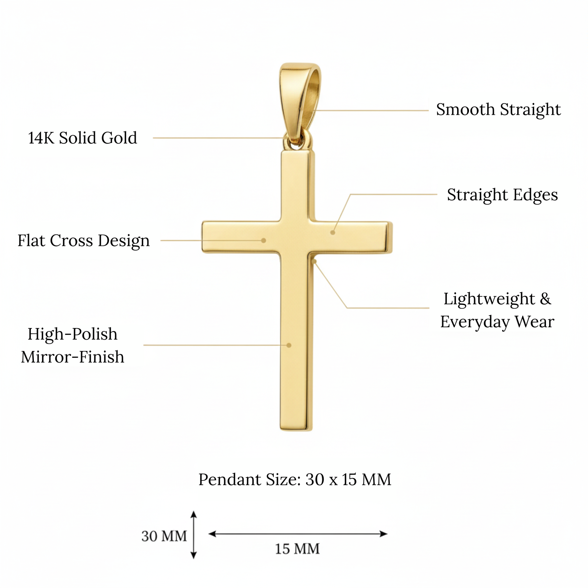 This timeless 14K yellow gold flat cross pendant features a clean, minimalist design with a smooth flat profile and a high-polish finish. Its simple yet meaningful style makes it perfect for everyday wear, layering, or as a thoughtful symbol of faith.